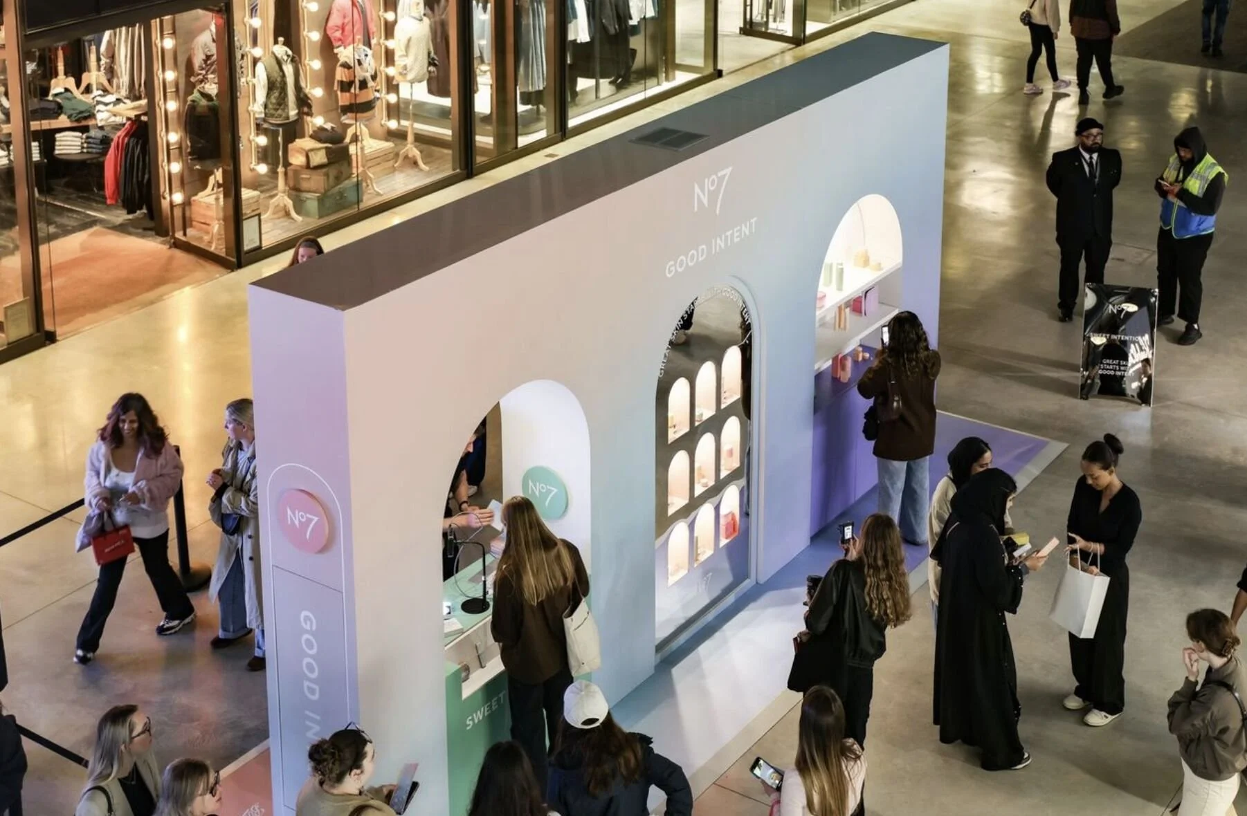 To celebrate the launch of No7 Beauty Company’s Good Intent range, the brand brought its playful and positive energy to life with an immersive, one-day pop-up at Battersea Power Station. Designed to drive brand awareness and engagement among a younger demographic, the experience invited influencers and consumers alike to step inside a world inspired by the dreamy hues and radiant tones of the Good Intent products.